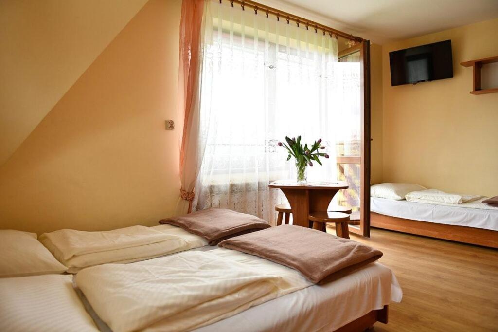 Pokój Dwuosobowy z widokiem na góry. The double room offers a wardrobe, an electric kettle, a balcony with mountain views as well as a private bathroom boasting a shower. The unit has 2 beds. Pokój Dwuosobowy - 2 osobowy. Powierzchnia pokoju ok.: 13 mkw. ;