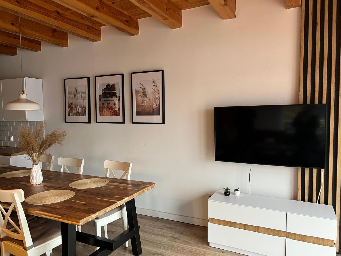 Dom z 3 sypialniami. The fireplace is the standout feature of this holiday home. This holiday home features 1 living room, 3 separate bedrooms and 2 bathrooms with a shower. Guests will find a stovetop, a refrigerator, a dishwasher and kitchenware in the well-equipped kitchen. The holiday home also comes with a barbecue. Boasting a terrace with lake views, this holiday home also features a washing machine and a flat-screen TV. The unit has 6 beds. Dom wakacyjny - 8 osobowy. Powierzchnia pokoju ok.: 80 mkw.