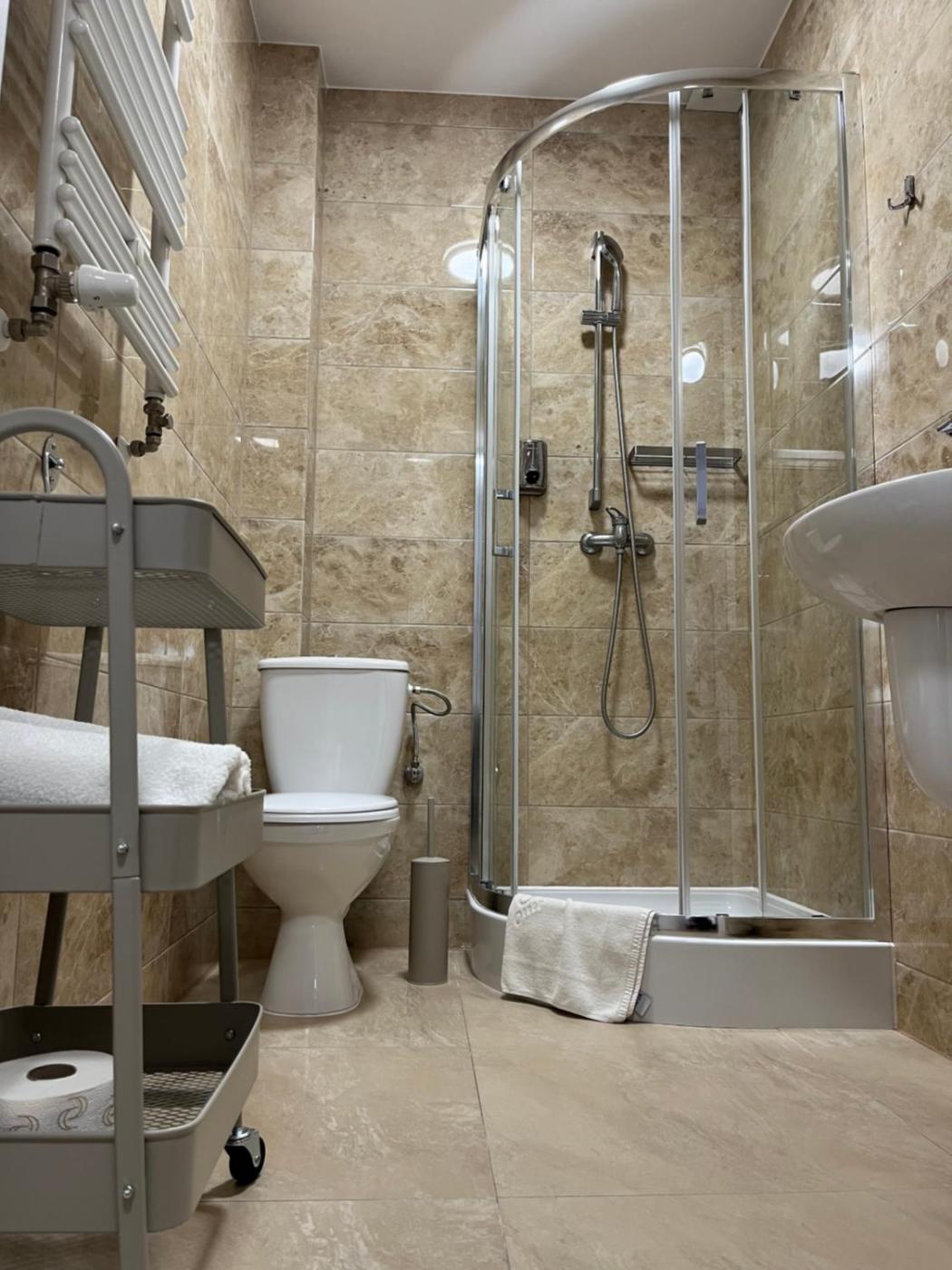 Pokój trzyosobowy z łazienką. The triple room provides air conditioning, a wardrobe, as well as a private bathroom featuring a walk-in shower and a hairdryer. The triple room offers an electric kettle, parquet floors, heating, as well as a flat-screen TV. The unit offers 3 beds. Powierzchnia pokoju ok.: 15 mkw.