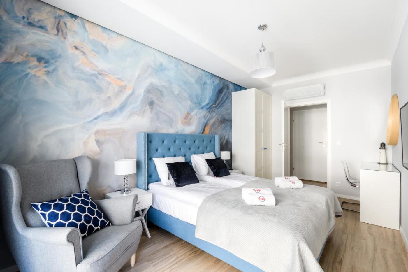 Apartament z 2 sypialniami. This spacious apartment comes with 1 living room, 2 separate bedrooms and 2 bathrooms with a walk-in shower and free toiletries. Guests can make meals in the kitchen that features a stovetop, a refrigerator, a dishwasher and kitchenware. The air-conditioned apartment features a flat-screen TV with streaming services, a washing machine, a private entrance, soundproof walls as well as city views. The unit has 3 beds. Apartament - 6 osobowy. Powierzchnia pokoju ok.: 83 mkw.